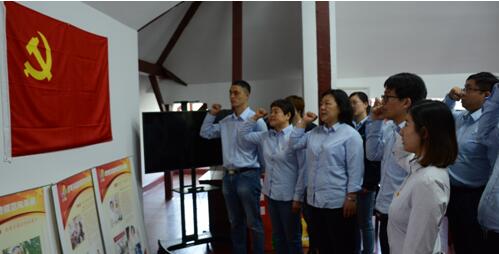 在整個參觀過程中,黨員們看得很認真,聽得很仔細。最后我們來到紀念館三樓黨員宣誓處,面對鮮紅的黨旗,全體黨員莊嚴地舉起右手,莊嚴宣誓:“我志愿加入中國共產(chǎn)黨,擁護黨的綱領,遵守黨的章程,履行黨員義務,執(zhí)行黨的決定,嚴守黨的紀律,保守黨的秘密,對黨忠誠,積極工作,為共產(chǎn)主義奮斗終身,隨時準備為黨和人民犧牲一切,永不叛黨?!辩H鏘的語調(diào),響亮的聲音,久久回蕩。