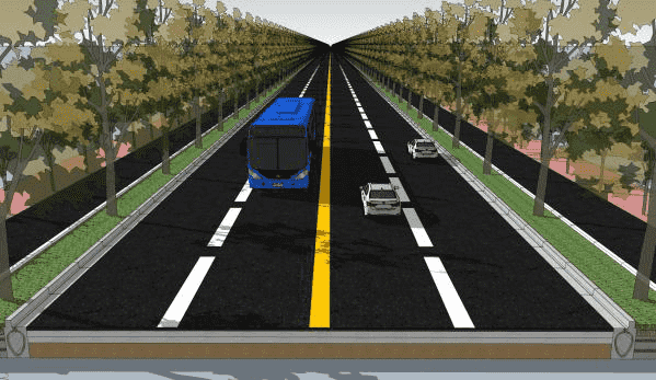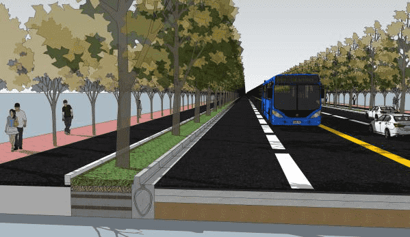 新產(chǎn)品將在禮耕路道路建設(shè)中得以使用。禮耕路本次實施段西起奧體西路,東至規(guī)劃路,道路總長約336.5米,規(guī)劃道路等級為城市次干路,紅線寬30米,設(shè)計采用雙向四車道的三塊板形式。新產(chǎn)品就應用在快速路的兩側(cè),在施工前期,我們制作了三維效果圖,來展示新產(chǎn)品在實際應用中的效果。