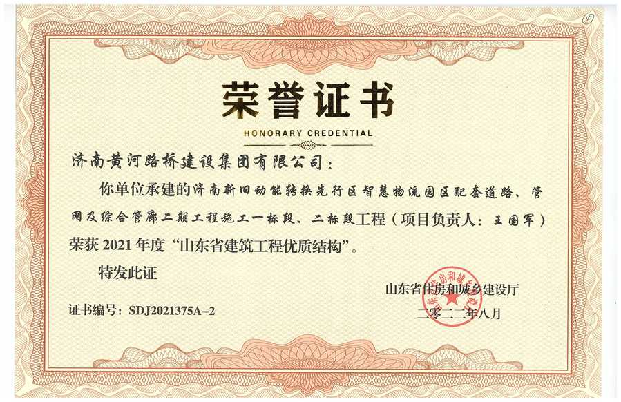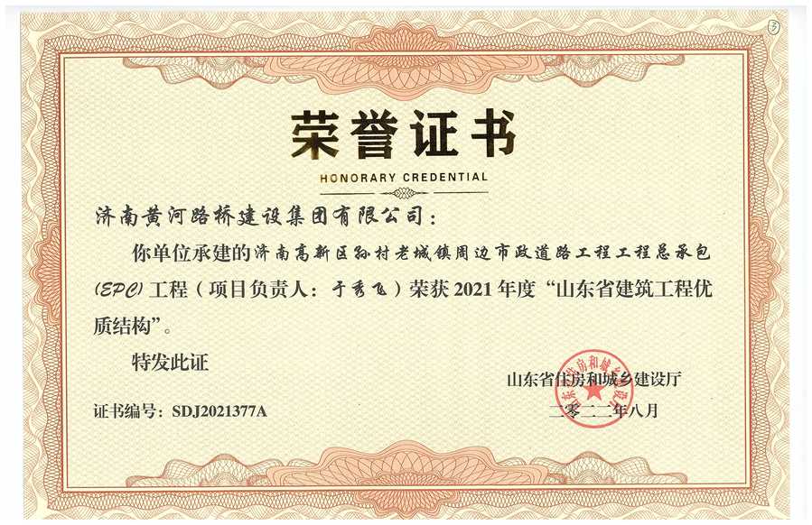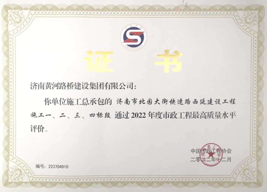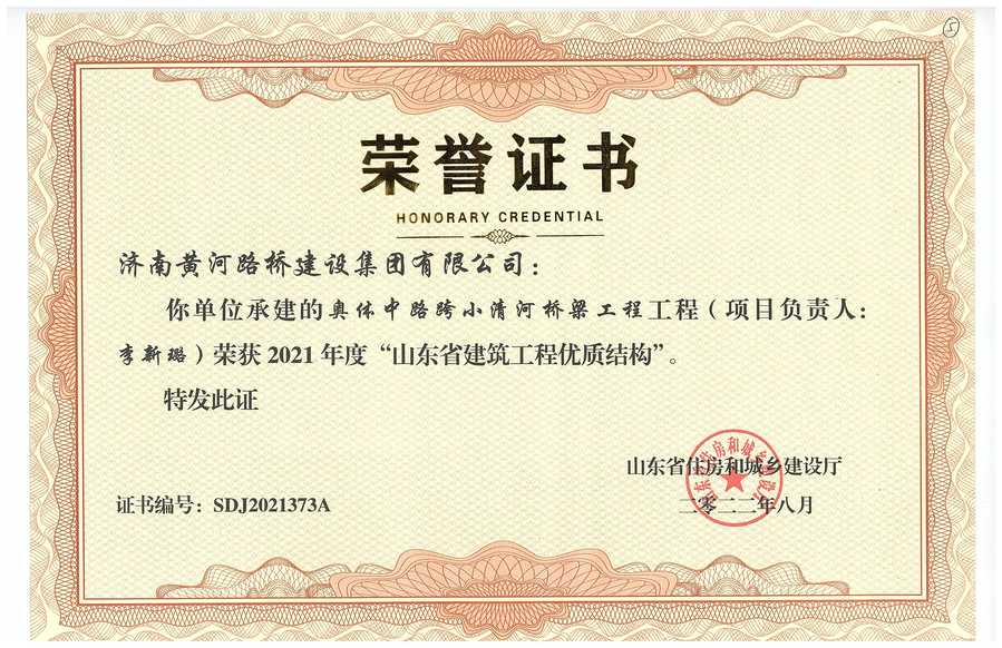 奧體中路跨小清河橋梁工程榮獲2