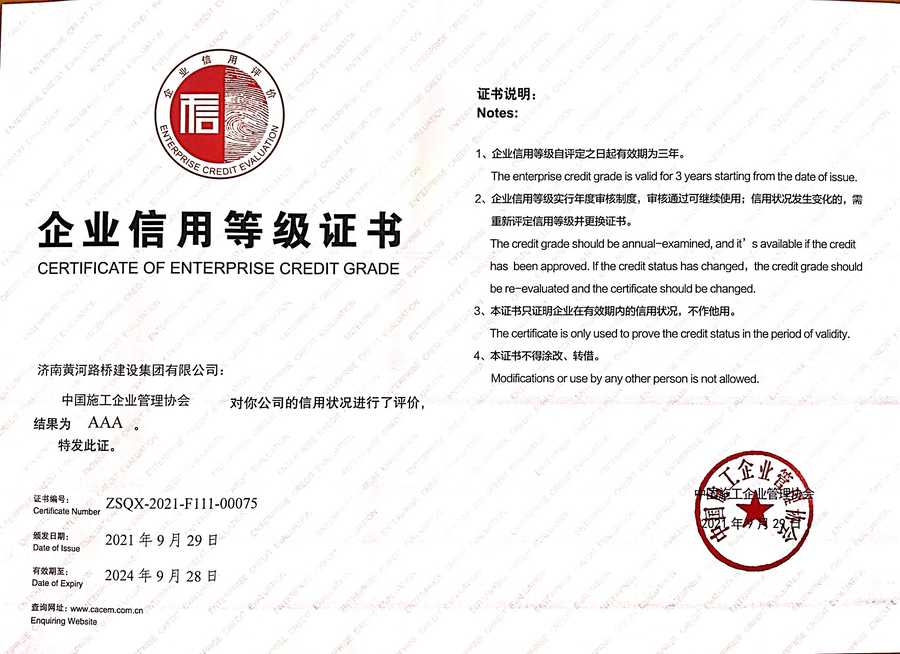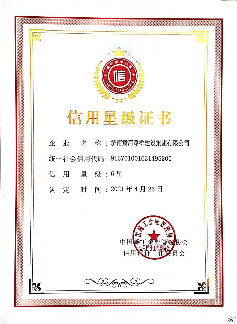 施工企業(yè)6星信用星級證書